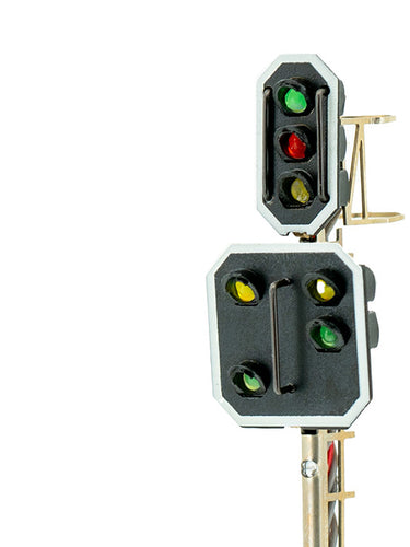 Alle Retro Signalmodelle erhalten Sie voll verkabelt und mit Widerständen versehen. Neuheit 2025: Direktes Anschließen wird durch die Farbkodierung leichtgemacht.